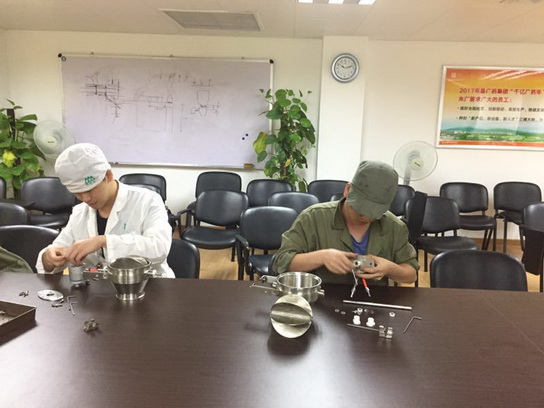 7月18、19日,第三制造部對分裝車間一、二線分裝崗位各7名員工進(jìn)行螺桿分裝機(jī)新下粉裝置的清洗、滅菌、安裝及使用的實(shí)操培訓(xùn)。