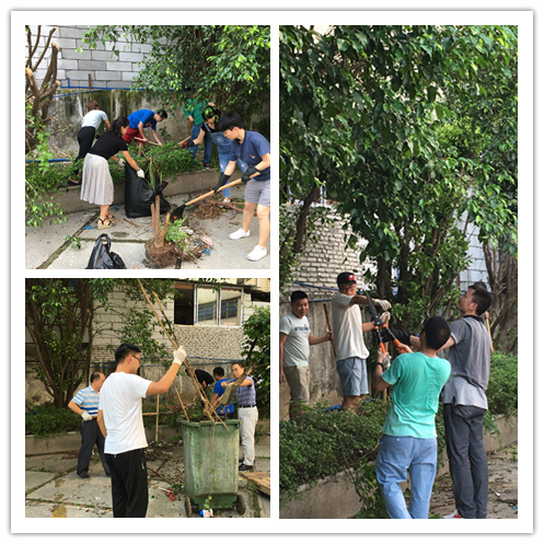 按照事先制定的工作計劃,參與義務(wù)勞動的同志分成四個小組,劃片區(qū)包干,先完成清掃片區(qū)的同事積極加入到其他任務(wù)重的片區(qū)去,同心協(xié)力完成衛(wèi)生打掃。大家戴上手套或手握鋤頭、鐵鍬、大剪刀、鐮刀、掃把、火鉗等工具,到創(chuàng)新中心前大院、后院環(huán)保池周邊、綠化帶、與城中村接壤圍欄以及樓頂,重點(diǎn)針對衛(wèi)生死角、與榕樹頭村接壤圍欄中丟棄的生活垃圾、環(huán)保池周邊堆積的垃圾等進(jìn)行了清理和清潔工作,扶正臺風(fēng)吹倒的兩顆大樹,修剪綠化帶,疏通樓頂下水道淤積的垃圾。盡管天氣炎熱,很多人都汗流浹背,但參加活動的所有黨員、團(tuán)員、工會干事們都熱情高漲,不怕臟、不怕苦,遇到難于鏟除的垃圾,甚至徒手處理。