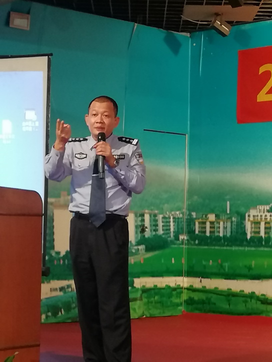 防火管理大隊三級警長陳慶洪進行宿舍消防安全演講