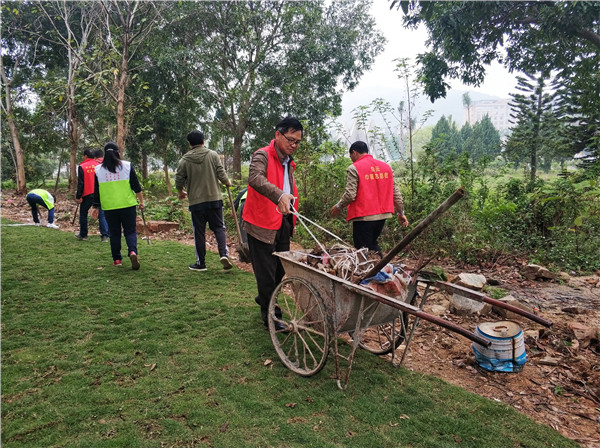 隨著白云山前門文化廣場綜合整治工程的落實,廣場面貌已煥然一新,但東花園園區(qū)內仍存在部分垃圾雜物,影響衛(wèi)生環(huán)境。為了創(chuàng)造整潔、優(yōu)美、文明的花園環(huán)境,在總廠黨委委員劉漢明、黨支部副書記田彬的帶領下,第六黨支部黨員群眾前往東花園開展衛(wèi)生清潔活動。盡管當天下著小雨,黨員群眾們依然干勁十足,大家分工合作,清理出大量垃圾雜物,大大提升了東花園環(huán)境質量。