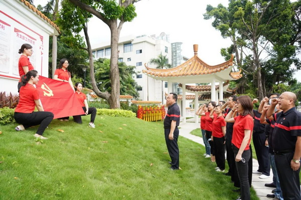 參觀完畢,許鎮(zhèn)江書記帶領(lǐng)黨員同志,面對鮮紅的黨旗,鄭重舉起右手,通過重溫入黨誓詞,回顧當(dāng)初入黨宣誓時的莊嚴承諾和堅定決心,再一次接受心靈洗禮,進一步堅定理想信念。