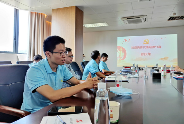 抗疫先鋒代表邵慶龍同志、溫韜同志現(xiàn)場進行了經(jīng)驗分享。