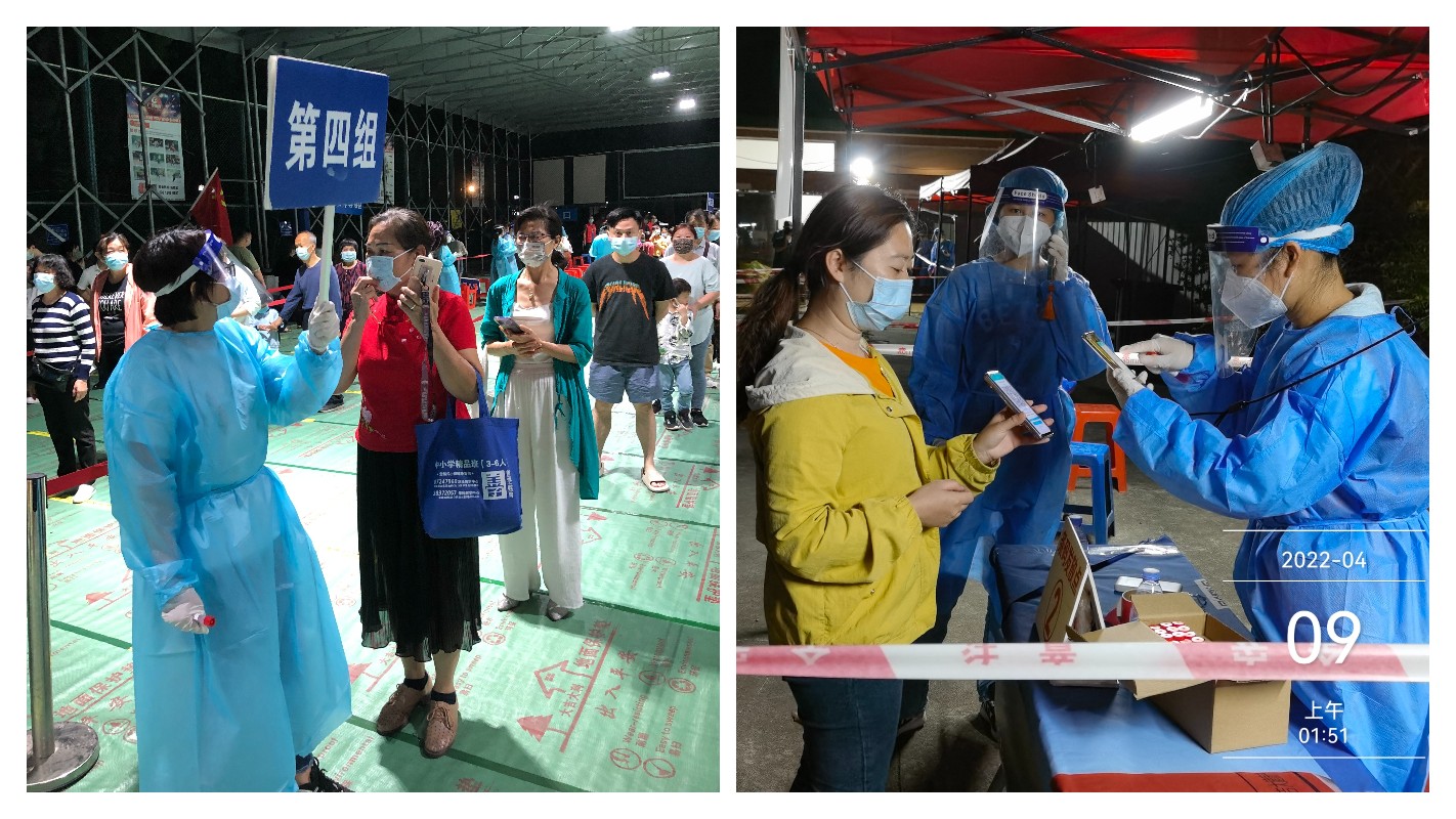 3月18日,按照社區(qū)疫情防控要求,八支部的張全輝和二支部的徐慧雯夫妻立馬向社區(qū)報(bào)到,從早上9點(diǎn)一直忙到下午5:30,對(duì)社區(qū)37棟大樓大堂進(jìn)行逐一張貼防疫宣傳海報(bào)。傍晚6:00左右,突然接到社區(qū)通知,小區(qū)有由密接人員轉(zhuǎn)紅碼人員,樓棟馬上實(shí)施管控,急召志愿者。張全輝、徐慧雯又主動(dòng)報(bào)名參加,協(xié)助社區(qū)對(duì)該棟200余名人員進(jìn)行核酸篩查,工作至晚上10:00結(jié)束,這一天他們并肩作戰(zhàn)13個(gè)小時(shí)。