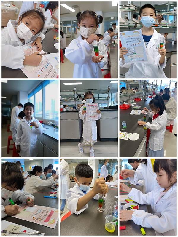隨后,孩子們參觀了制劑、分析和原料實(shí)驗(yàn)室。在原料藥實(shí)驗(yàn)室,孩子們開啟了一次神奇的科學(xué)實(shí)驗(yàn)之旅——制作彩虹雞尾酒科學(xué)小實(shí)驗(yàn)。他們認(rèn)真地聽完實(shí)驗(yàn)老師的講解,在家長的細(xì)心引導(dǎo)下,色彩繽紛的彩虹雞尾酒完美地呈現(xiàn)在了小小實(shí)驗(yàn)員的手中??粗约河H手完成的美麗作品,每個小朋友的眼睛里都閃爍著自豪的光芒。