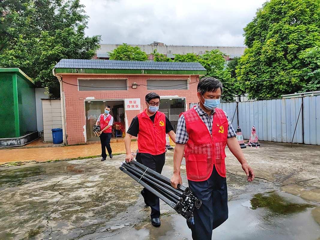總廠黨委委員、副廠長劉漢明啟動實戰(zhàn)演練儀式。白云山藥廠社區(qū)黨總支書記柯蘭芳、副書記邢海春部署實戰(zhàn)演練工作任務。演練假設情景為核酸檢測場地遭受自然因素破壞后,快速重建場地,恢復運作。