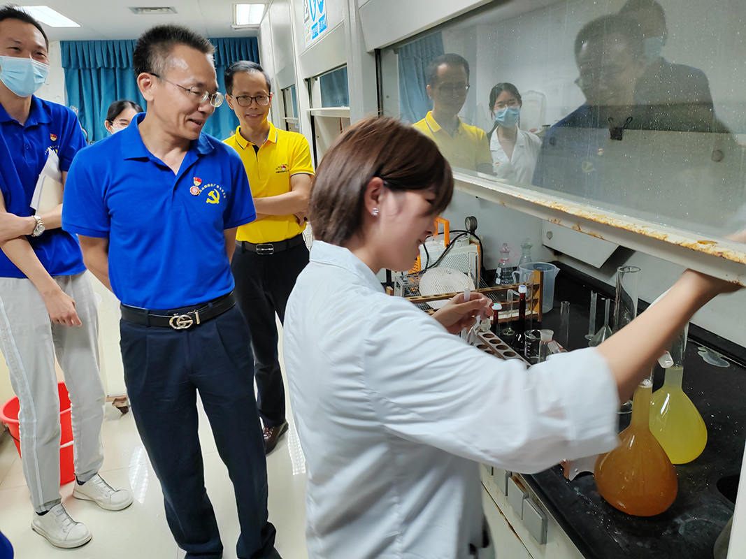 在王瑋的帶領下,黨員們參觀了創(chuàng)新研發(fā)中心黨支部黨員書屋、藥研所實驗室。