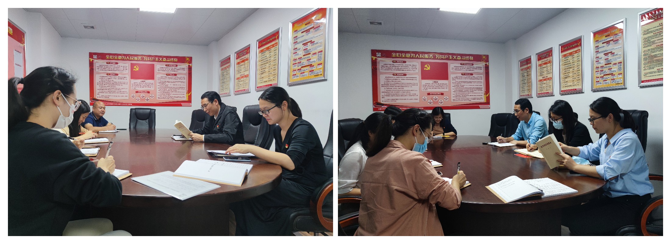 第五黨支部先后組織兩次集體學(xué)習(xí),分別由支部書記廖炎輝和紀(jì)檢委員鄭曉萍領(lǐng)學(xué)《習(xí)近平新時代中國特色社會主義思想專題摘編》和《論黨的自我革命》。
