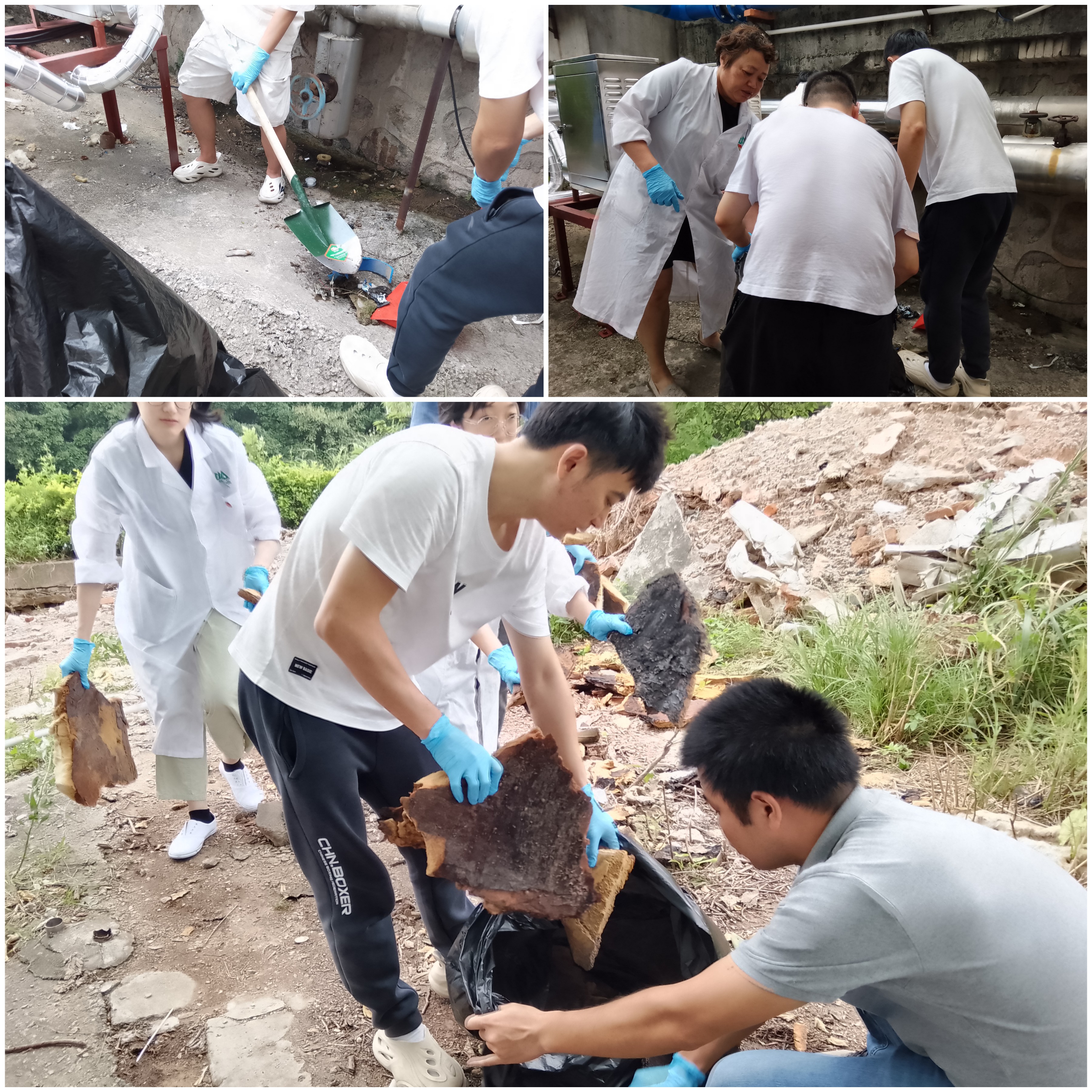 第十黨支部的黨員帶領(lǐng)團(tuán)員對質(zhì)量控制部大樓周圍環(huán)境進(jìn)行清理
