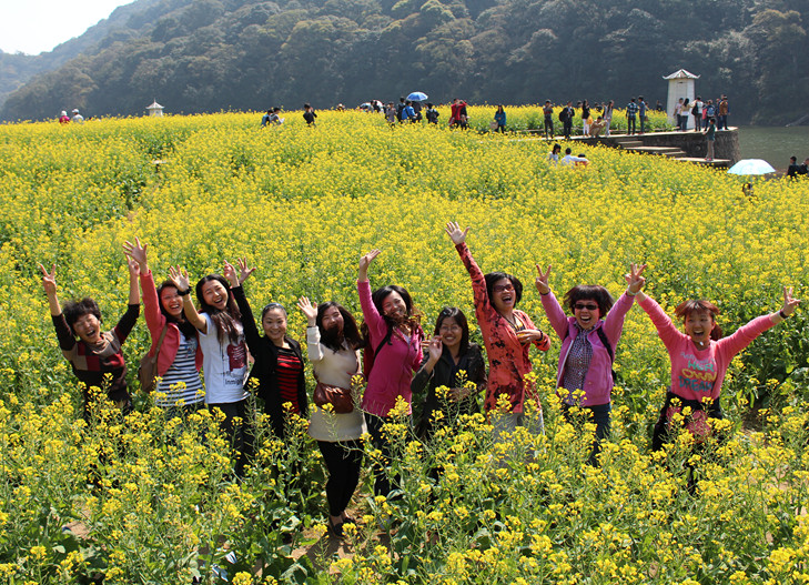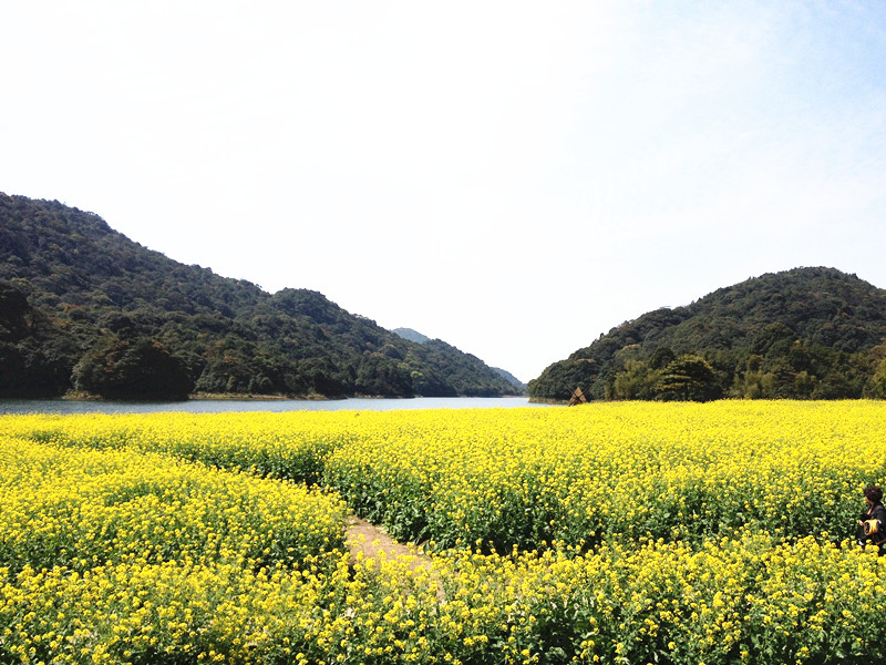 憑欄眺望,上百畝的油菜花田,綿延不斷。微風(fēng)吹過(guò),漫天遍野的油菜花搖曳生姿,淡淡的花香在鼻尖縈繞不散。陽(yáng)光下,湖面波濤折射出一個(gè)個(gè)夢(mèng)幻的圓圈,給人們帶來(lái)心靈的安寧和平靜。不遠(yuǎn)處,山谷林立,翠色蔥蔥,在藍(lán)天的映襯下,相得益彰?;ㄌ锢?,游人如織,或與蜜蜂嬉戲,或與蝴蝶起舞,構(gòu)成了一幅心曠神怡的田園風(fēng)光。