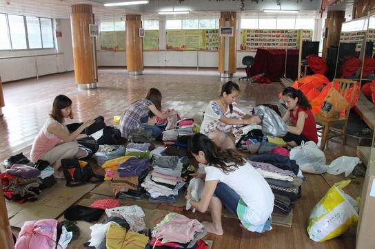 藝術(shù)團(tuán)成員整理愛心衣物