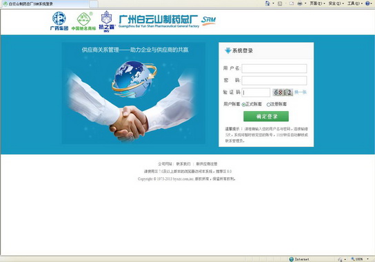白云山制藥總廠供應(yīng)商關(guān)系管理(SRM)系統(tǒng)登錄界面
