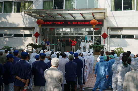 “強化紅線意識,促進安全發(fā)展”是總廠2014年“安全生產(chǎn)月”的主題。為了貫徹“安全第一,預(yù)防為主,綜合治理”的方針,繼續(xù)推進總廠的安全文化建設(shè),提高員工的安全素質(zhì),為實現(xiàn)總廠2014年“產(chǎn)業(yè)升級,引領(lǐng)發(fā)展,促總廠效益規(guī)模再上新臺階”的工作主題保駕護航。第三制造部結(jié)合總廠“安康杯”活動的安排及要求和部門自身安全生產(chǎn)的特點,以貼近實際,突出主題為這次活動的重點,通過精心策劃和組織,開展了一場別開生面的新粉針大樓人員應(yīng)急疏散及消防器材演練。