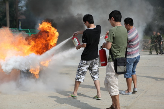 首先我們請了總廠保衛(wèi)部的康彥豪隊長為我們做了干粉滅火器的操作培訓(xùn)。他演示了怎樣用干粉滅火器滅火,他一邊講解一邊示范,他還教我們一個常識,“當(dāng)火里面有油時,千萬不能用水來滅火,要用干粉滅火器滅火”。接著他還給我們示范了防毒面具的正確使用方法。