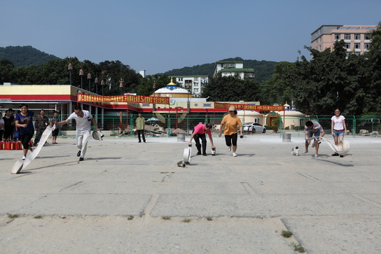 隨后我們的隊伍集中到總廠大門口的操場進行滅火的實操演練。保衛(wèi)部部長謝秋生、康彥豪隊長對演習(xí)所用器材都進行了一一檢查,并再次詳細(xì)講解滅火器材的使用方法及注意事項,還手把手跟員工們一起參與到實際的滅火演練中來。活動開始,演習(xí)人員在起跑線站好,經(jīng)警隊員們同時點燃油桶,熊熊烈火馬上燃燒起來,,只見演習(xí)人員立即跑到滅火器處,手提干粉滅火器上下?lián)u晃幾次,撥出保險銷跑向火場,并在距離火點2-3米處,一手握緊噴嘴,對準(zhǔn)火源根部,另一手的大拇指將壓把按下,干粉立馬噴出,他們還不斷地?fù)u擺噴嘴,使粉霧橫掃桶內(nèi)燃燒火焰的根部,由遠(yuǎn)而近,向前推移,很快將火撲滅?!皡柡?、漂亮、加油”,員工們的歡呼聲此伏彼起。通過本此的實際演習(xí),員工們都掌握了火災(zāi)發(fā)生后的處理步驟和滅火常識。