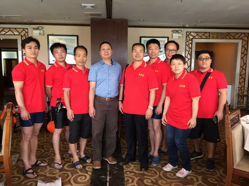 7月21日,廣州中山大學(xué)北門,珠江河面,藍(lán)天白云,太陽高照,微風(fēng)陣陣,廣州橫渡珠江活動在這里舉行。出征前,集團(tuán)工會副主席簡惠東與大家合影留念,為大家積極參加“全民健身與奧運(yùn)同行” 廣州市橫渡珠江活動吶喊鼓勁。廣州市和友好城市佛山、肇慶、河源、東莞、中山、清遠(yuǎn)市,省直機(jī)關(guān),駐穗部隊等有關(guān)領(lǐng)導(dǎo)參加了活動。