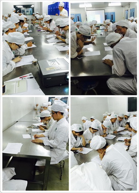 第二制造部總質(zhì)檢吳紅斌、工藝員方燕娜、屈專專作為授課者分別就質(zhì)量和工藝方面的知識進(jìn)行了深入的講解;車間主任劉盛、肖沛君、林榮洲、孫忠平根據(jù)各車間生產(chǎn)實際情況,對崗位標(biāo)準(zhǔn)操作規(guī)程及清潔、清場等知識進(jìn)行了細(xì)致的培訓(xùn)。由于不同崗位所需要掌握的知識不一致,崗位要求也有所區(qū)別,此次將生產(chǎn)車間和包裝車間的員工分開進(jìn)行培訓(xùn),考試時根據(jù)崗位類別分開進(jìn)行考核。根據(jù)培訓(xùn)人員不同制定合適的培訓(xùn)課程內(nèi)容,培訓(xùn)試題也根據(jù)人員分類編制出不同難易程度的試卷,使得此次培訓(xùn)更具有針對性。