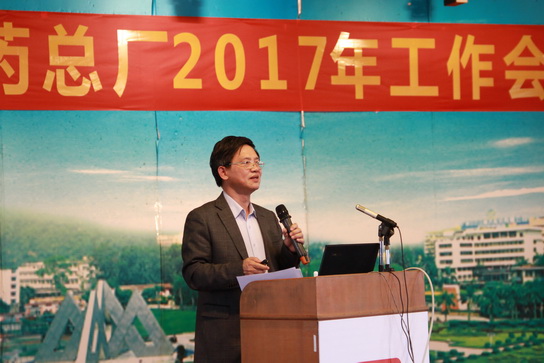 廣藥集團(tuán)總經(jīng)理助理黎洪介紹集團(tuán)2016年經(jīng)營(yíng)業(yè)績(jī)和“九大亮點(diǎn)”,并對(duì)總廠發(fā)展提出殷切期望