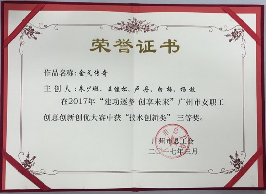 2月27日,由廣州市總工會主辦的“建功逐夢 創(chuàng)享未來”2017年廣州市女職工創(chuàng)意創(chuàng)新創(chuàng)優(yōu)大賽在廣州市工人文化宮舉行。大賽共有來自各行各業(yè)的63支隊(duì)伍、600多名女職工參賽。白云山制藥總廠以《金戈傳奇》為參賽作品,通過嚴(yán)謹(jǐn)詳實(shí)的闡釋材料、聲情并茂的現(xiàn)場演繹、豐富生動的視頻展示巧妙結(jié)合,在技術(shù)創(chuàng)新組30個參賽單位中脫穎而出,榮獲三等獎的好成績。