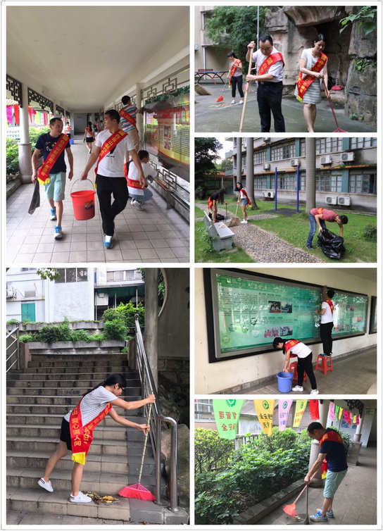 總廠職工在總廠青年之家和諧家園門口進行清掃衛(wèi)生