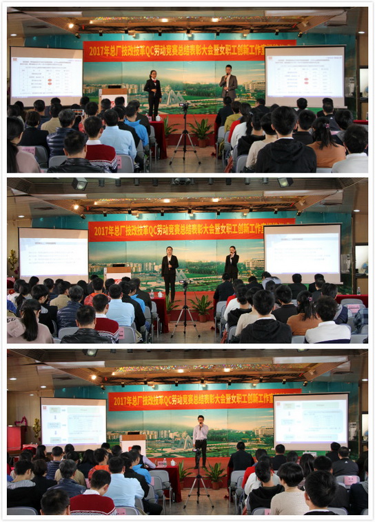 會(huì)上,工會(huì)主席蔡淑君簡要回顧總結(jié)了2017年QC活動(dòng)情況及亮點(diǎn)。一是活動(dòng)啟動(dòng)早,員工參與面廣,繼續(xù)保持員工注重細(xì)節(jié)改良,參與企業(yè)管理的積極性,35個(gè)項(xiàng)目順利結(jié)項(xiàng),活動(dòng)吸引近300名員工參與;二是加強(qiáng)培訓(xùn)和過程指導(dǎo),QC活動(dòng)跟進(jìn)更實(shí)時(shí)、更有效,項(xiàng)目質(zhì)量得到有效提升;三是創(chuàng)新文化進(jìn)一步弘揚(yáng),首次出現(xiàn)了創(chuàng)新型項(xiàng)目?,F(xiàn)場還對(duì)榮獲“最佳成果獎(jiǎng)”的優(yōu)秀成果進(jìn)行匯報(bào),精彩分享讓人眼前一亮。與會(huì)的集團(tuán)工會(huì)領(lǐng)導(dǎo)和總廠領(lǐng)導(dǎo)為獲獎(jiǎng)小組及優(yōu)秀組織集體頒獎(jiǎng),表彰先進(jìn),樹立典型。