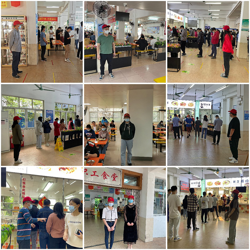 在食堂日常管理方面,總廠工會始終堅持“嚴”字當頭,嚴把食品安全關、嚴控食材源頭關、嚴管食堂消毒關、嚴檢資料記錄關。在疫情初現(xiàn)的第一時間,總廠工會迅速通過工會委員會、膳食委員會工作群,發(fā)布總廠食堂疫情防范要求通知,確保宣傳到位。同時,加強食堂用餐的現(xiàn)場宣傳引導,自3月中旬起,總廠工會組織了工會委員、膳食委員、職工群眾共260人次,開展食堂早、中、晚用餐值守工作,對用餐防疫秩序進行嚴格管控。有效將食堂疫情防控工作“做細、做實、做嚴”,切實筑牢防疫安全底線,全力保障職工用餐安全。