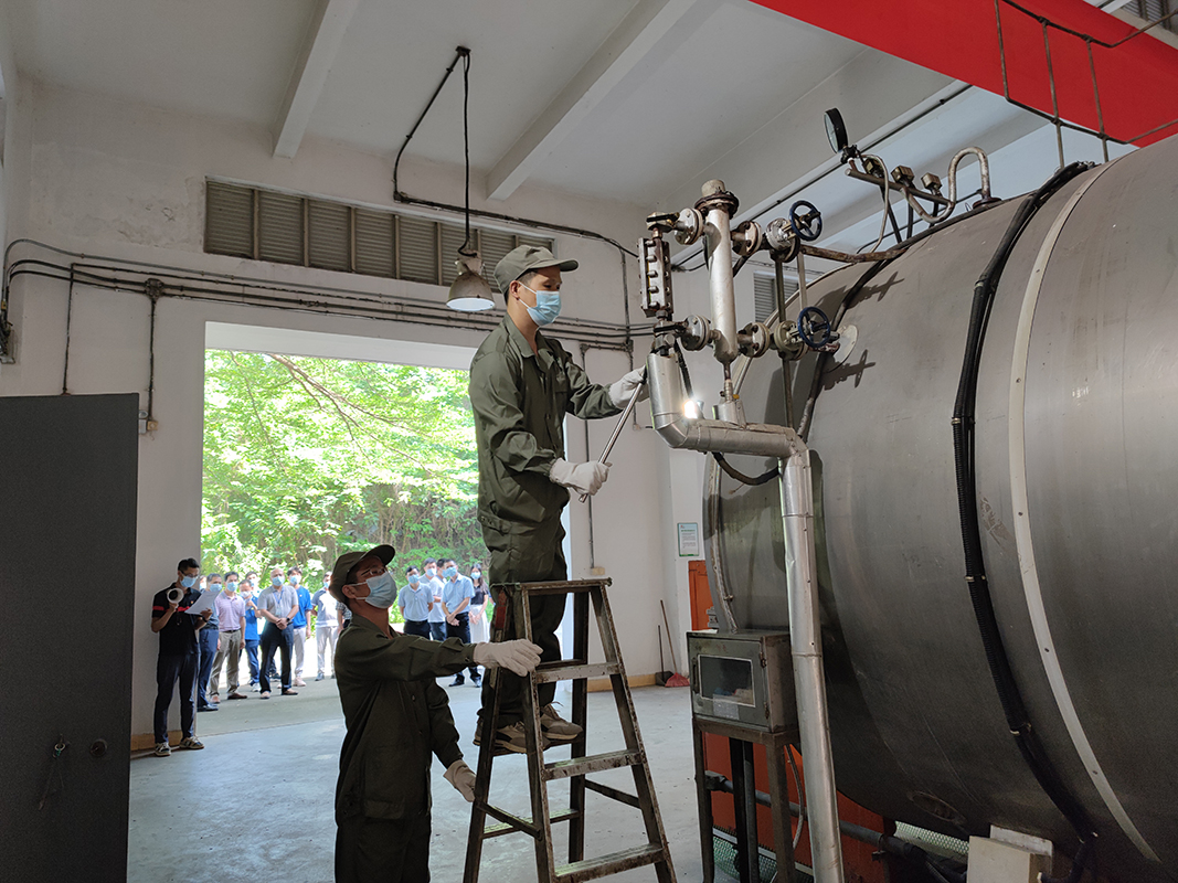 演練模擬了司爐工在鍋爐房進(jìn)行日常巡視時(shí),發(fā)現(xiàn)鍋爐看不到水位,立即通知鍋爐班長(zhǎng),按規(guī)定操作確認(rèn)為“嚴(yán)重缺水”事故,隨后緊急停止鍋爐運(yùn)行;按照程序啟動(dòng)應(yīng)急預(yù)案,組織人員疏散、進(jìn)行救援。同時(shí),組織相關(guān)技術(shù)人員檢查缺水原因,確認(rèn)無(wú)隱患后,批準(zhǔn)正常運(yùn)行。整個(gè)演練過(guò)程緊張有序,組織指揮得當(dāng),及時(shí)排除險(xiǎn)情,演練人員行動(dòng)迅速、配合有序,達(dá)到了預(yù)期的效果。