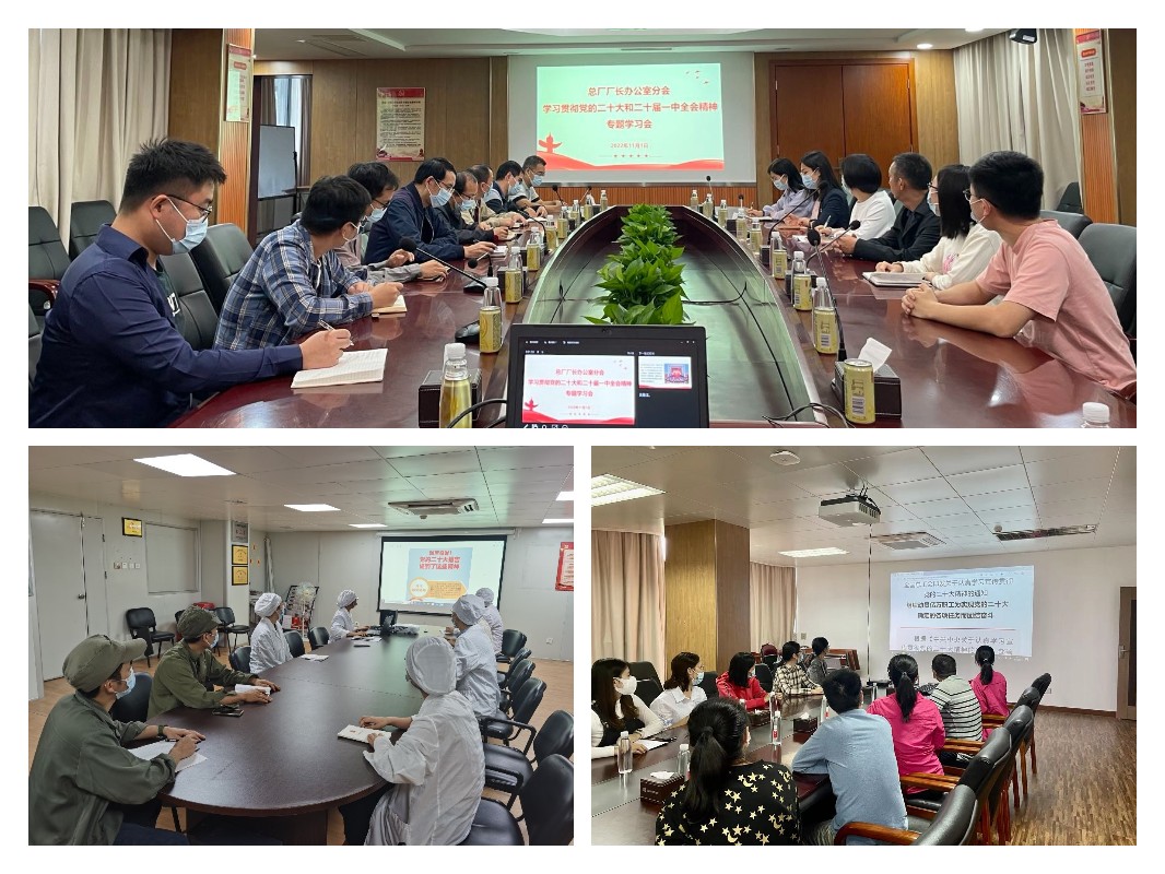 黨委辦公室充分利用總廠官方公眾號開設(shè)“二十大精神學(xué)習(xí)”專欄,持續(xù)轉(zhuǎn)發(fā)推送黨的二十大學(xué)習(xí)資料,職能部門利用工作例會學(xué),車間班組利用崗前培訓(xùn)學(xué),團(tuán)員青年利用圖書角交流研討學(xué),深化黨員群眾學(xué)習(xí)成果,讓黨的二十大精神入腦入心。