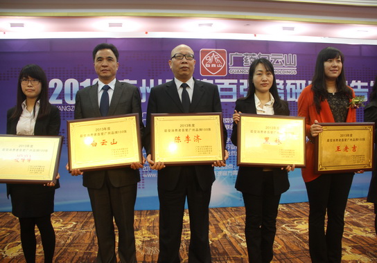 2014年2月26日,首屆廣州百強品牌榜發(fā)布會在廣州大廈舉行。廣藥集團“白云山”、“王老吉”、“潘高壽”、“陳李濟”、“敬修堂”等品牌榮獲廣州百強品牌,其中“白云山”品牌以其在知名度,美譽度,購買傾向構成的廣州品牌價值力排行榜中名列第17位,醫(yī)藥行業(yè)品牌排名第2位。白云山制藥總廠黨委書記周志魁代表企業(yè)參加了此次發(fā)布會并上授獎。