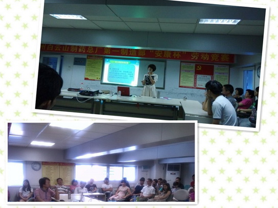2014年7-8月,白云山制藥總廠第一制造部在工會(huì)領(lǐng)導(dǎo)的關(guān)心和大力支持以及在門領(lǐng)導(dǎo)和廣大員工的共同努力下,圓滿舉辦了系列“安康杯”勞動(dòng)競賽活動(dòng),包括QC小組活動(dòng)成果發(fā)表、疾病相關(guān)保健知識(shí)講座和安全生產(chǎn)知識(shí)培訓(xùn)。