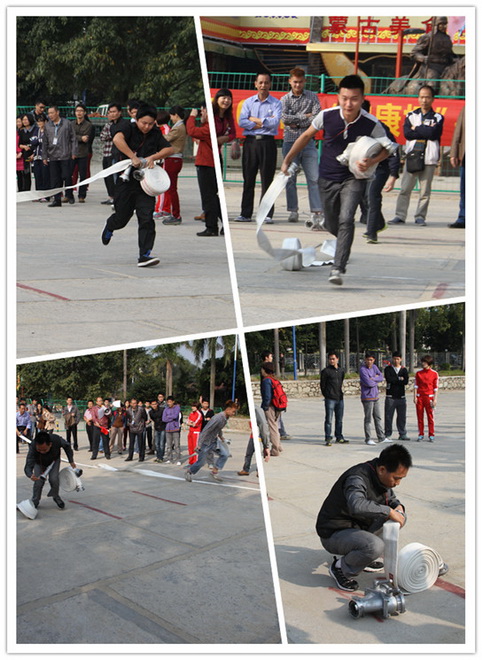 比賽現(xiàn)場氣氛高漲,參賽隊員個個精神抖擻。第一個項目:防毒面具的配戴。隨著裁判下達開始口令后,只見各組參賽隊員個個訓(xùn)練有素、奮勇爭先,他們配戴速度快得驚人。第二個項目:室外消防栓兩盤水帶連接出水滅火。各隊參賽選手密切配合,你追我趕,奮勇向前,一個個健步如飛、勇猛而不失細節(jié)。第三個項目50米滅油火,參賽隊員手提干粉滅火器,快速沖到37米外的油盆火點,在離油桶1米處,拔下保險銷、站在上風頭對準火焰“根部”、按下手柄……熊熊的火焰頃刻間變成一絲絲白煙。參賽隊員在場上奮勇拼搏,而一旁觀摩的同仁們同樣“忙”得熱火朝天:吶喊聲、助威聲、歡呼聲一浪比一浪高。經(jīng)過三個項目的比賽,質(zhì)管部取得了第一名的好成績,保衛(wèi)部經(jīng)警隊以4秒的差距獲得了第二名,第二制造部獲得了第三名,其他各隊分別獲得優(yōu)勝獎。