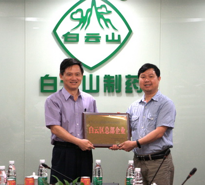 2015年5月15日,白云山制藥總廠榮獲白云區(qū)總部企業(yè)、納稅大戶突出貢獻(xiàn)獎(jiǎng),授牌儀式在第一會(huì)議室舉行。白云區(qū)政協(xié)副主席侯鹿、政協(xié)辦公室副主任羅程源、同和街道相關(guān)領(lǐng)導(dǎo)親臨總廠授牌??倧S副廠長(zhǎng)鄭麗真、劉漢明、工會(huì)主席、紀(jì)委書記許鎮(zhèn)江等領(lǐng)導(dǎo)出席活動(dòng)。會(huì)議由同和街黨工委書記何富強(qiáng)主持。