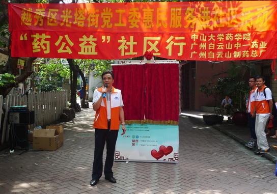 6月2日上午,白云山制藥總廠聯(lián)合白云山中一藥業(yè)、中山大學(xué)藥學(xué)院開展的“藥公益”社區(qū)行——安全合理用藥活動(dòng)在越秀區(qū)光塔街正式啟動(dòng)。白云山制藥總廠黨委書記周志魁、廣州白云山中一藥業(yè)黨委副書記薛敏、中山大學(xué)藥學(xué)院黨委副書記丁小球出席了本次活動(dòng)并為公益活動(dòng)項(xiàng)目揭幕。