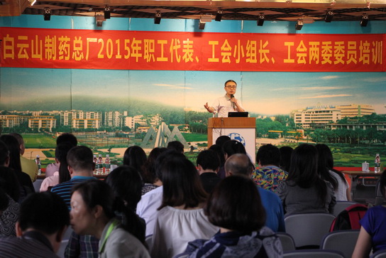 2015年10月30日,白云山制藥總廠工會組織年度的職工代表、工會小組長及工會兩委委員培訓(xùn)活動,活動邀請了市總工會紀(jì)曉輝部長做《認(rèn)識工會》的專題培訓(xùn)課程??倧S黨委書記周志魁、總工程師許春江出席培訓(xùn)會議,會議共約160人參加。紀(jì)委書記、工會主席許鎮(zhèn)江主持會議活動。