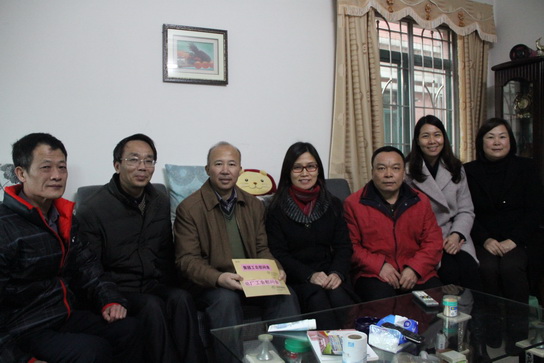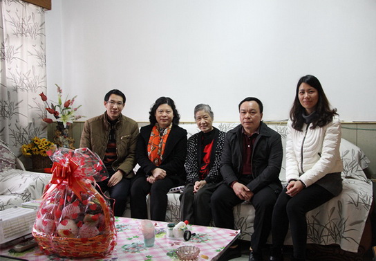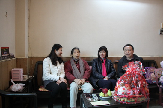 2016年1月21日,總廠副廠長(zhǎng)鄭麗真(右二)、工會(huì)主席(右一)慰問退休職工張霖和(左二)